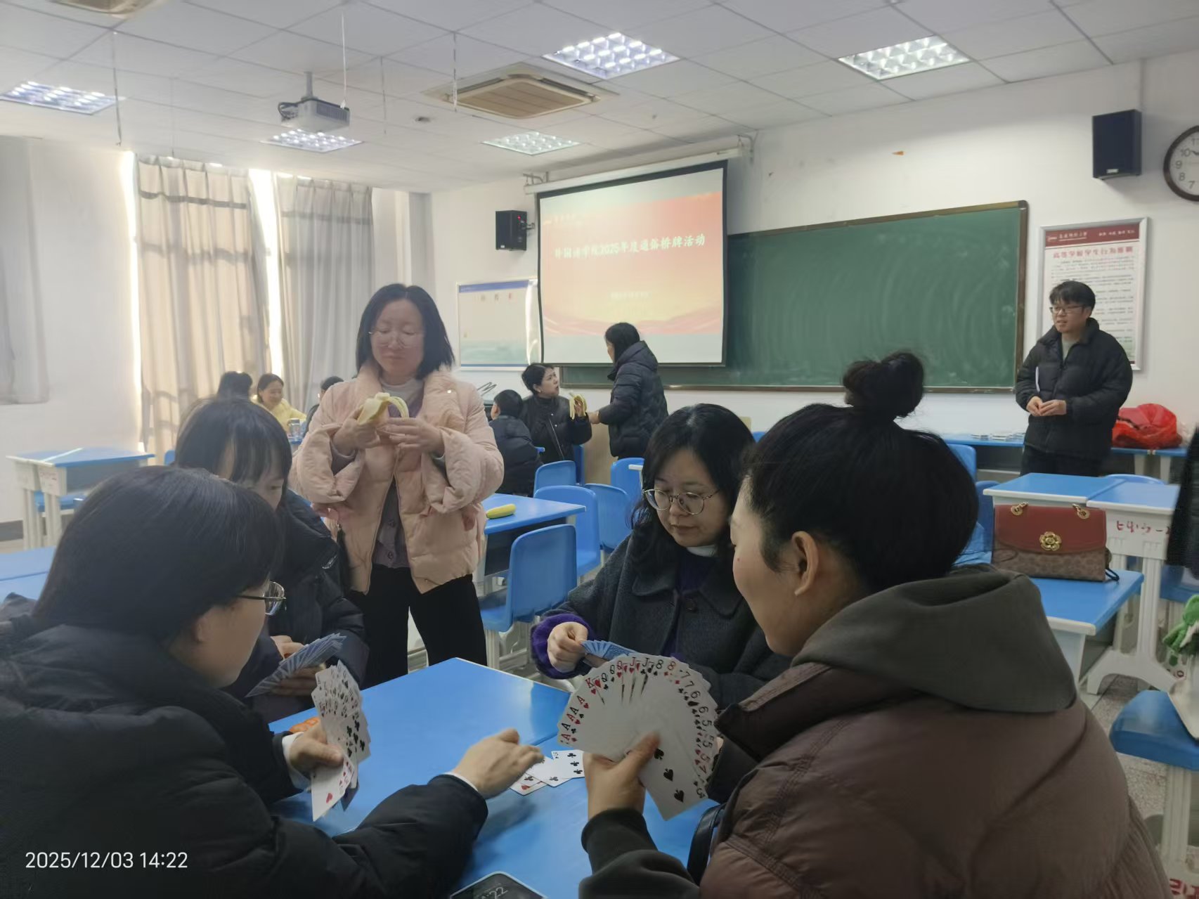 为丰富教职工业余文化生活,营造和谐融洽、团结协作的学院氛围,tyc41183太阳成集团分工会于2025年12月3日下午,在E419、421教室成功举办了2025年度通俗桥牌活动,全体教职工积极响应热情参与。