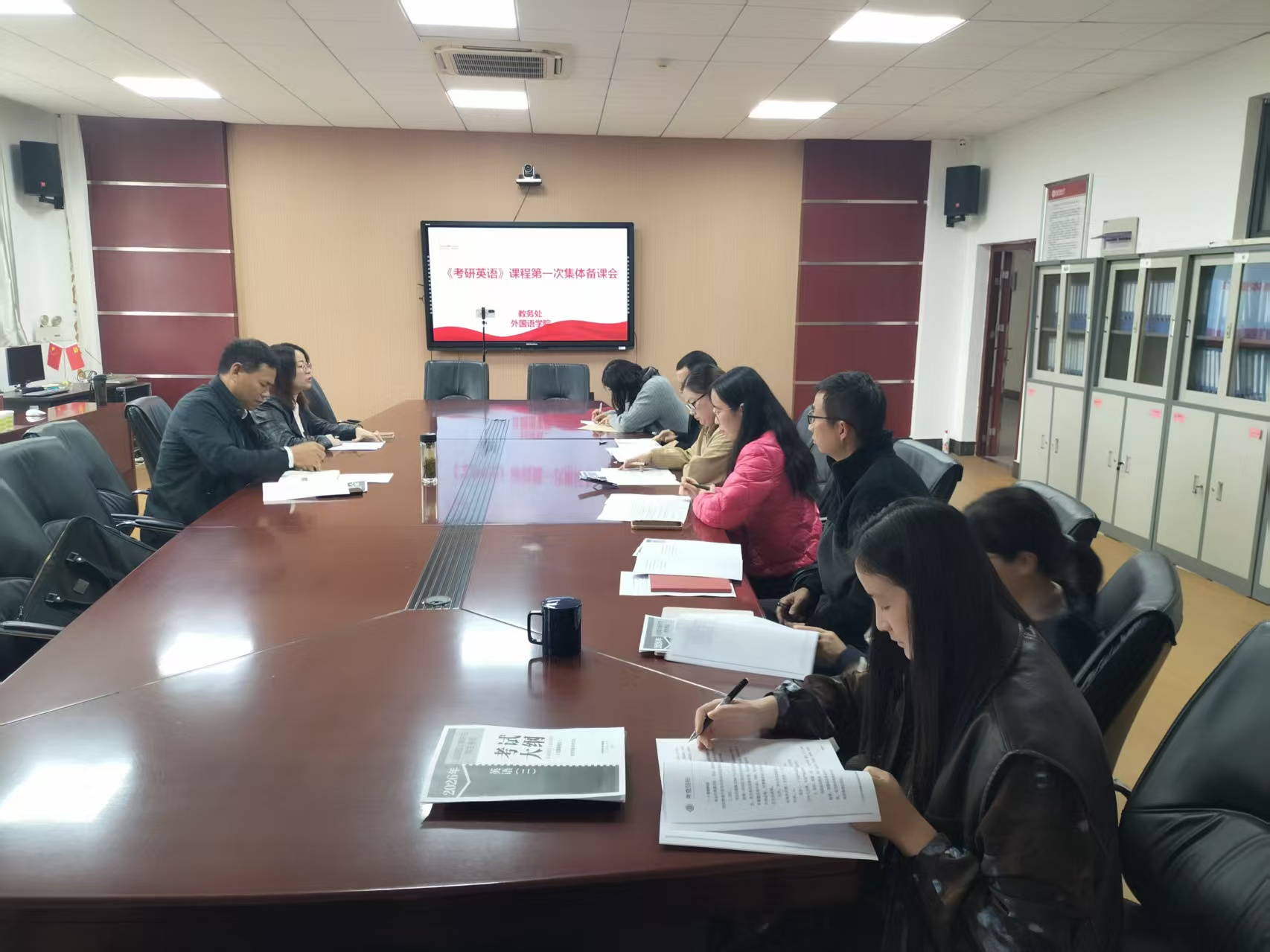 11月7日下午,tyc41183太阳成集团在E304会议室组织召开《考研英语》课程首次备课会。教务处处长潘锦云、tyc41183太阳成集团副院长瞿宁霞、《考研英语》授课教师团队及教务科全体成员参与备课研讨。会议由瞿宁霞主持。
