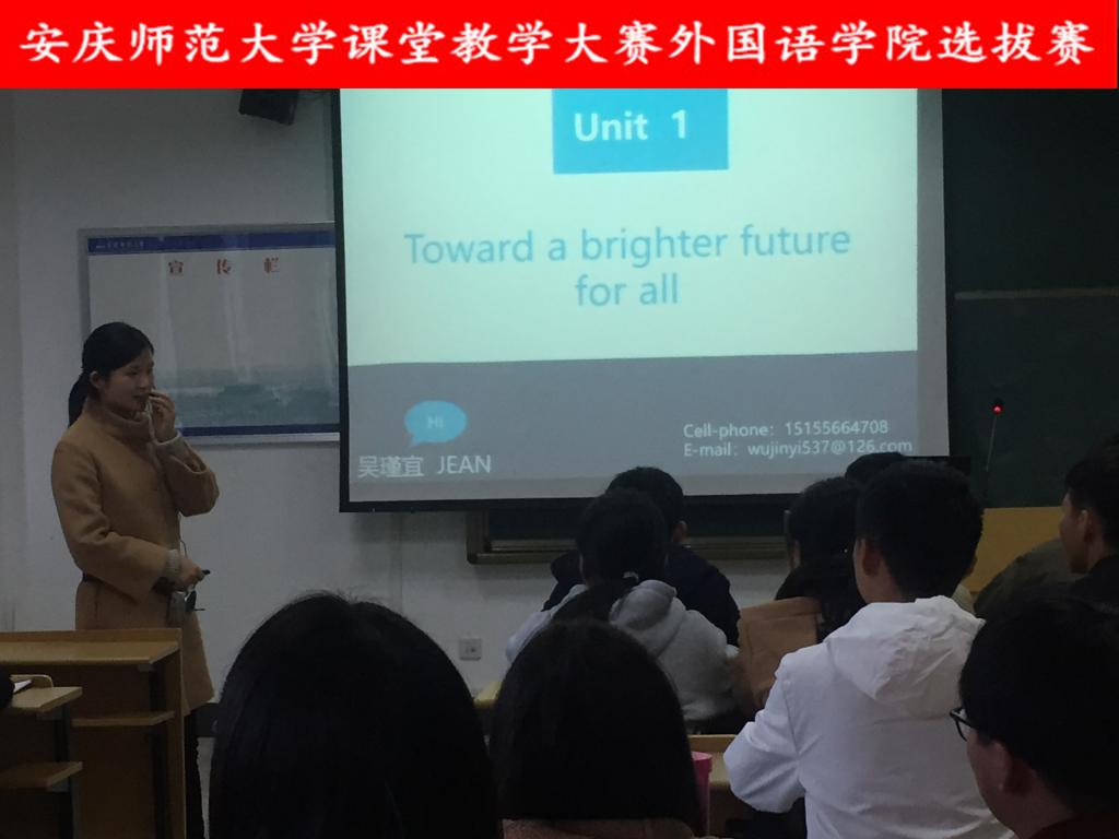 参赛教师就阅读技巧、课文导入、视听训练、口语交流、思维导图、互动式、讨论式课堂教学等内容进行了展示。各位选手精彩的课堂展示赢得了观摩教学的老师们阵阵掌声。领导和评委老师就各位选手的表现进行了精彩点评,并提出了建设性意见。