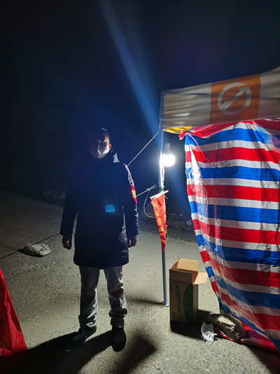 黄全灿值守的路口位于318国道附近,这里居住着石镜乡两个行政村的居民,与邻近的两个乡镇都有公路连接,人员流动大,是乡里的一个重点管控路口。黄全灿的的工作就是每天晚上对进出的行人、机动车辆、非机动车辆进行管控和登记。虽然夜晚人员出入极少,但也有个别人冒险“闯关”。志愿服务工作期间,黄全灿曾花费十多分钟劝导过一位外地车主返程,他表示其实大部分民众对劝导工作都是理解和支持的。“有一户人家,非常支持我们的交通管制工作,原本打算开车将去外地复工的孩子送去市区的高铁站,在了解情况后,临时调整了出行方案,用自家的车把孩子送到路边,又叫了一辆镇上的车子把孩子送到高铁站”黄全灿说。