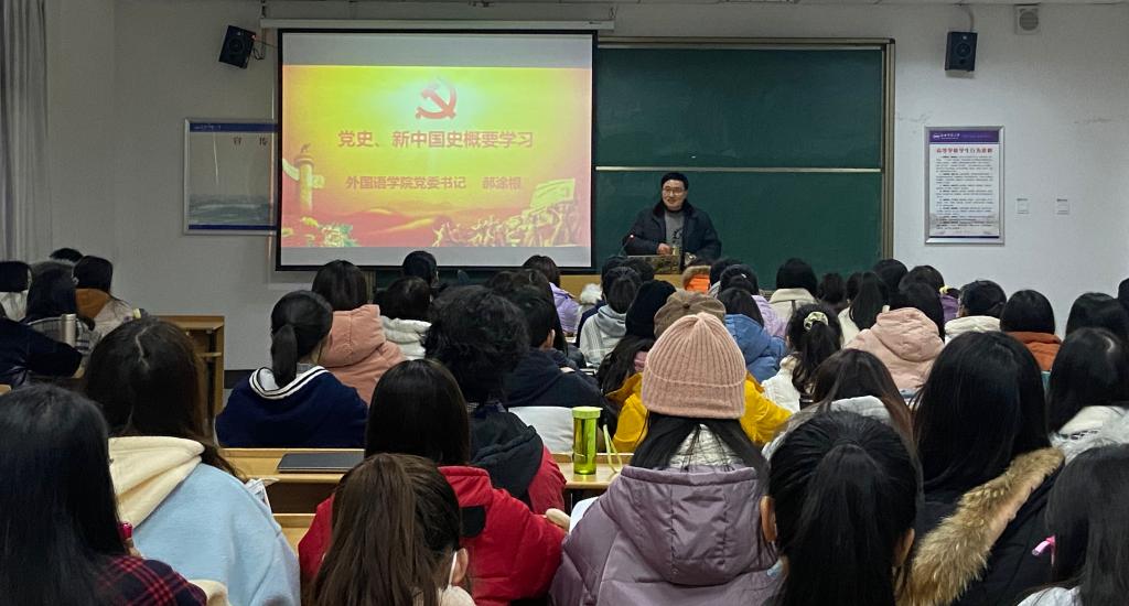 为推进关于开展党史、新中国史、改革开放史、社会主义发展史学习教育工作的落实,12月10日,tyc41183太阳成集团在E201教室开展“学四史”专题党课。tyc41183太阳成集团党委书记郝涂根讲授了题为“党史、新中国史学习概要”的专题党课。学院党支部书记、辅导员、第62期全体入党积极分子参加了党课学习。