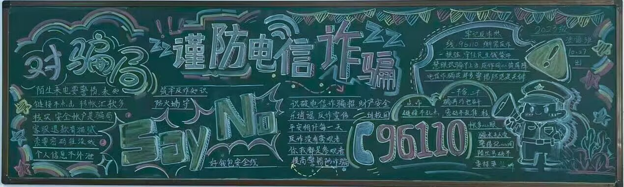 活动紧扣当前校园反诈工作的重点与难点,聚焦学生群体中易发、高发的网络虚假购物、网络刷单、虚假交友、非法网络贷款等典型诈骗场景,引导各班级围绕这些主题进行创作。在筹备过程中,各班级积极响应,充分发挥创意与团队协作精神,将粉笔手绘、案例漫画、警示标语等多种艺术形式与反诈知识要点深度融合。一幅幅版面设计精美、色彩搭配鲜明、内容翔实的黑板报作品,不仅生动再现了真实诈骗案例,深入剖析了诈骗手法,还系统梳理了实用的防范技巧与应对策略,兼具视觉吸引力与教育实用性,有效激发了同学们主动学习、深入了解反诈知识的兴趣。