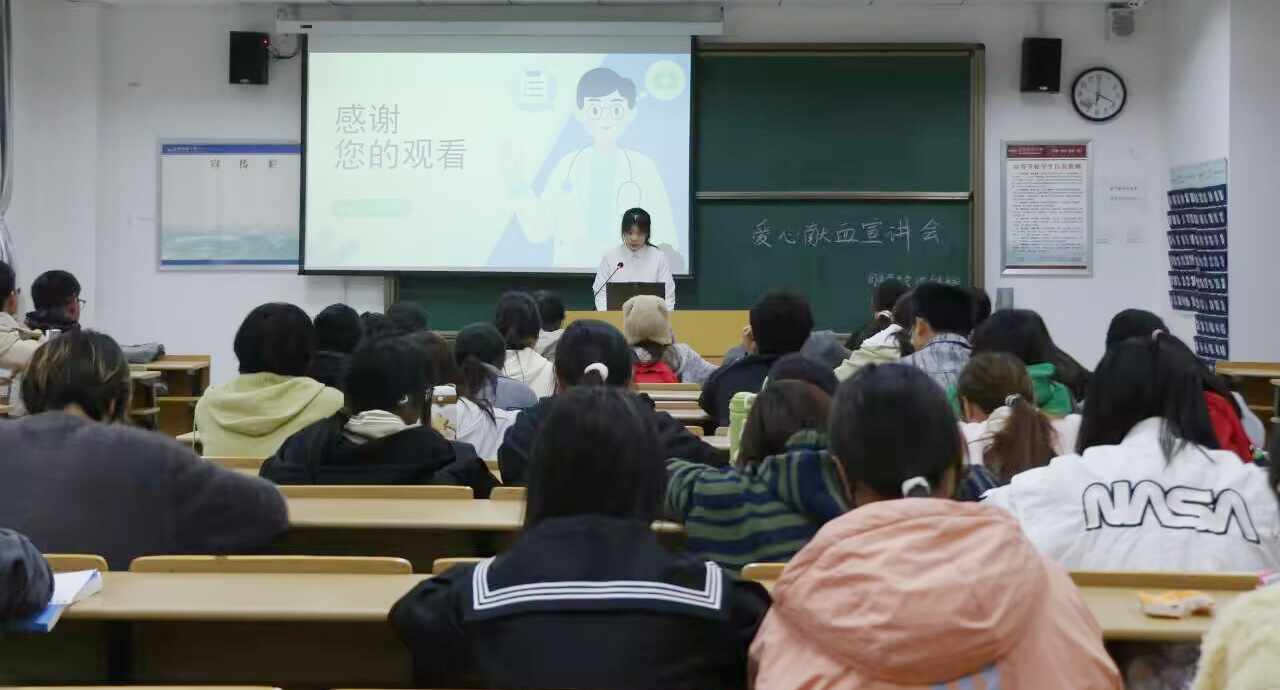 线下动员聚合力。tyc41183太阳成集团在E316教室举办爱心献血动员大会,近百余名学生积极报名参加。会上,宣讲同学结合自身实际与真实案例,详细讲解了献血的意义、流程及注意事项,用真挚的语言传递“奉献爱心,点亮生命”的正能量。大会现场还展示了往届献血活动的精彩照片,直观呈现同学们的奉献瞬间,进一步激发了在场同学的参与热情。