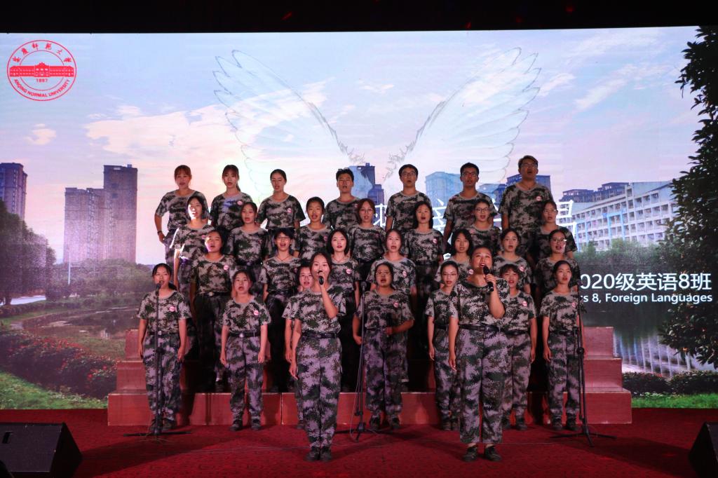 未来、梦想、希望、友爱……这些出现在歌曲中的关键词,唱出了新生们心中对大学的憧憬。“我第一次参加大学里的比赛,从准备到完成表演,整个过程都是新奇的,我会永远记得今晚的表演。” 英语8班表演负责人章子若刚刚结束了她的表演,她说每天军训后,她们班都要花2个小时来排练,但是没人喊苦喊累,都想着为集体争光。“正如我们演唱的歌名一样,每个人都有‘隐形的翅膀’,8班的翅膀就是拧成一股绳的精神。”