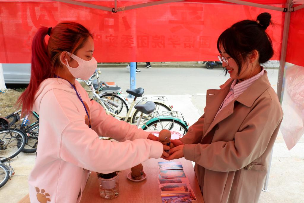 剪纸、书法用具、四级真题……活动现场多了一些“不速之客”,原来,这是英语专业2020(8)班的孔妍无偿捐献的义卖物品。“希望这些物品能物尽其用,发挥它们最大的价值。”对志愿服务特别感兴趣的她,总是以迎新志愿者、核酸检测志愿者等多种身份活跃在校园的各大志愿活动中,并乐此不疲。“参与志愿活动是传承雷锋精神的体现,希望越来越多的同学们都能加入进来,将小爱汇聚成大爱。”