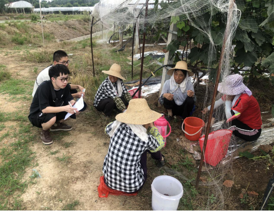 “乡村振兴的黄铺模式”调研团由tyc41183太阳成集团、传媒学院不同专业的8名队员组成,他们分成两组开展实践调研活动。其中一组前往当地居民点对居民就乡村振兴战略进行问卷调查,另外一组前往蓝莓园、皖国葡萄园等农特产业基地向相关负责人了解当地特色农业发展情况。