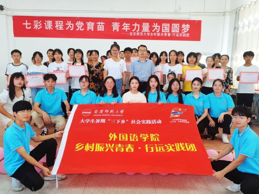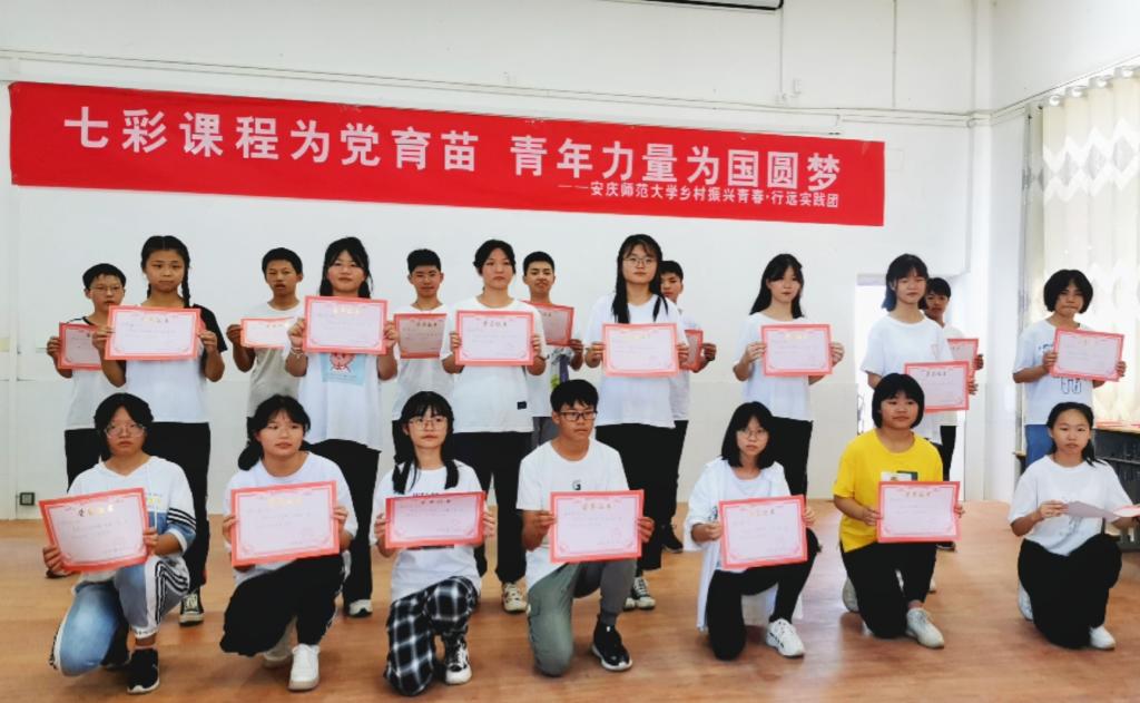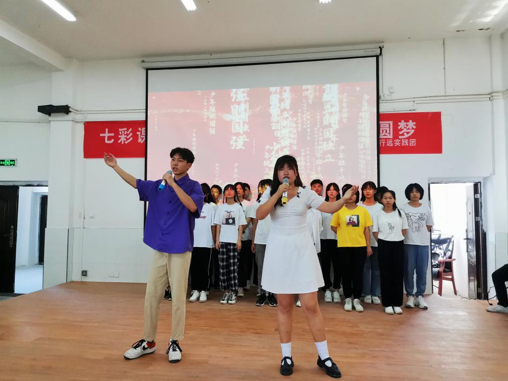 整个汇演现场利用新媒体进行直播,共有300余人次观看,7400余次点赞。从节目策划、道具服装到场地设计,实践团成员各显神通。汇演现场气氛热烈,歌舞、朗诵、相声、心理情景剧等多个节目让人目不暇接,通过讲、演、唱、奏结合的方式,让青年学生在艺术氛围中感悟党史,接受教育。“实践团出发前就开始筹划汇演节目,实践期间每晚都排练,耐心打磨细节,注重与支教学生的配合与互动。”队长吕成慧说。