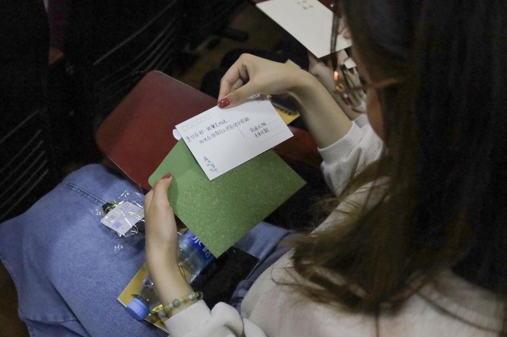 印有tyc41183太阳成集团专属印记的钥匙扣、带着美好祝愿的明信片,每个座位上都藏匿了“小礼物”等待拆封。“我们想为学院毕业生和老师们献上一份圆满的毕业季‘礼物’,希望他们能收获满满的美好回忆。”活动负责人、英语专业2020(2)班的杜渐行表示,他们在一个多月前就已经开始去筹备这场“惊喜”,只待最终的“揭秘”。
