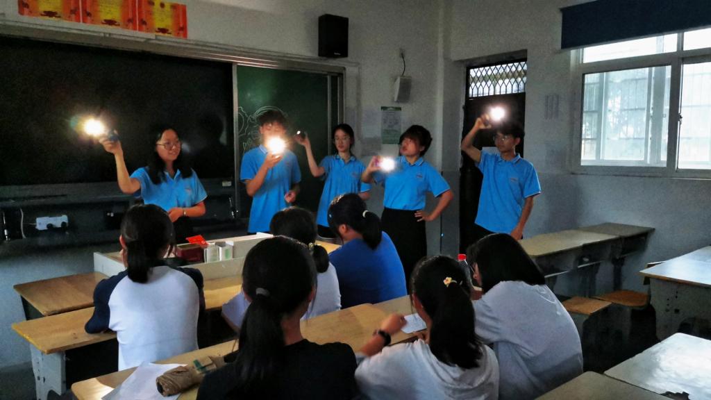 “传说有个魔仙堡,有个女王不得了”“别看我只是一只羊,羊儿的聪明难以想象”“新的风暴已经出现,怎么能停滞不前”……漆黑的教室里传来悠扬的歌声。谈及提议唱歌的原因,队员张杰解释道:“我注意到学生们很紧张,一直在看向窗外,我想用歌声缓解学生们的焦虑。”