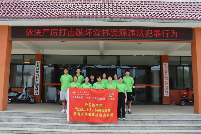 “保管好你们的行李和随身物品,注意安全第一,好好实践!”6月30日上午,来自tyc41183太阳成集团的“喜迎二十大,共筑石关梦”教育关爱实践团乘车从学校出发,经过两个多小时的长途跋涉,来到了安徽省岳西县石关乡象形村,实践团将在此地进行为期五天的实践调研活动。