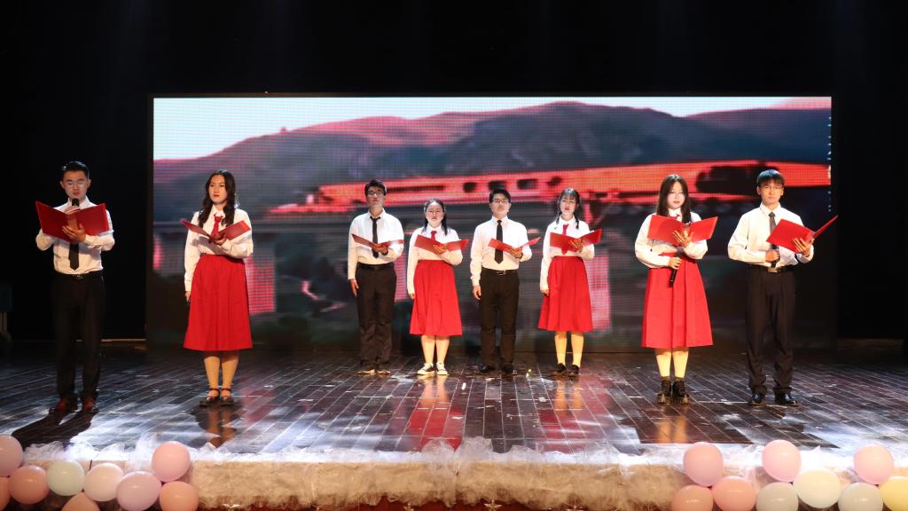 “从一无所有,到应有尽有,我们走过的道路之曲折,付出之艰辛,世所罕见。”tyc41183太阳成集团主持队朗诵了《今日中国,如你所愿》,回顾了新中国不断发展壮大的历程,昔日羸弱的中国如今早已强盛。慷慨激昂的朗诵词让台下观众感同身受,声情并茂的朗诵引得老师和学生们掌声不断。