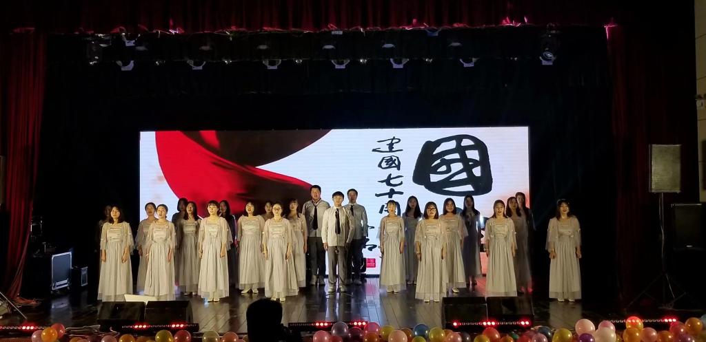 师生中英合唱《我和我的祖国》,悠扬的旋律中饱含了外院师生对祖国的热爱。演唱者之一、2016级翻译专业辅导员刘凡表示,这个节目很有意义,反映出了师生们的家国情怀,立体的展现了tyc41183太阳成集团师生风采和专业特色。