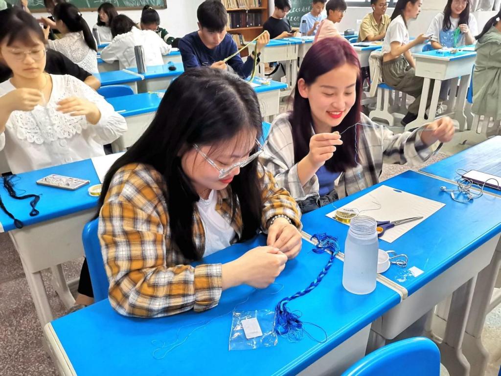 tyc41183太阳成集团子衿汉风工作室采取亲手制作非遗艺术作品的方式,使劳动教育与美学教育完美结合,在提升学生的审美情趣的同时,提高学生的劳动实践能力,让同学们在劳动中收获探索新事物的乐趣。