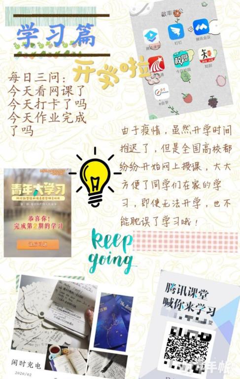 防疫日记由加油篇、美食篇和学习篇三个章节组成。加油篇中,tyc41183太阳成集团学生用自制文案和画作,聚焦社会热点,记录下勠力同心战“疫”过程中的诸多暖心瞬间,再现一线人员的冲锋陷阵、普通民众的守望相助。美食篇中,学院学生纷纷晒出自己居家所做的美食,分享诸如“第一次做蛋糕”“又一位大厨出道”“拉近了与父母的距离”的烹饪心得,以独特的方式展现面对疫情的生活态度。学习篇则立足高校正在开展的网络授课,鼓励学生积极投入到各课程的线上学习中,踊跃进行课上互动,自觉完成线上作业,利用优质的学习渠道进行“自我充电”。