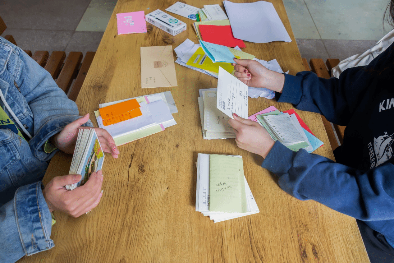 本次活动鼓励同学们通过书信、明信片或书签的形式和自己、朋友、陌生人甚至与书中人物对话,让同学们在繁忙的学业生活中或是舒缓情绪,或是激励自己。为确保活动的顺利进行,工作人员提前到达现场并准备所需材料,活动过程中耐心向前来参加的同学们介绍具体流程,现场气氛浓厚。